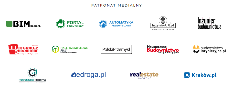 Patronami medialnymi wydarzenia są: Czasopismo Nowoczesne Budownictwo Inżynieryjne, Real Estate Magazine, Inżynier budownictwa Miesięcznik Materiały Budowlane, BIMblog.pl, Portal Przemysłowy, portale branżowe: edroga.pl, nbi.com.pl,  automatykaprzemyslowa.pl, haleprzemyslowe.plus, nowoczesny-przemysl.pl, polskiprzemysl.com.pl, InzynierUR.pl