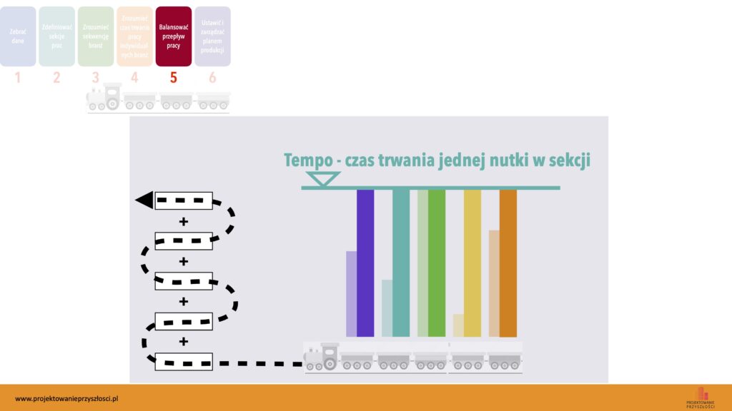 Polega on na zbalansowaniu czasu trwania wszystkich taktów dla jednej wartości czasowej. Oznacza to, że każda branża powinna spędzić w każdym domku taki sam czas pracy.