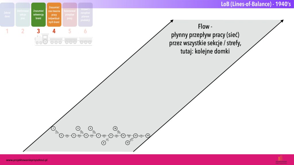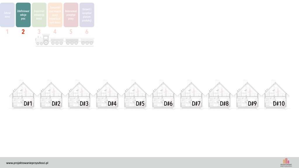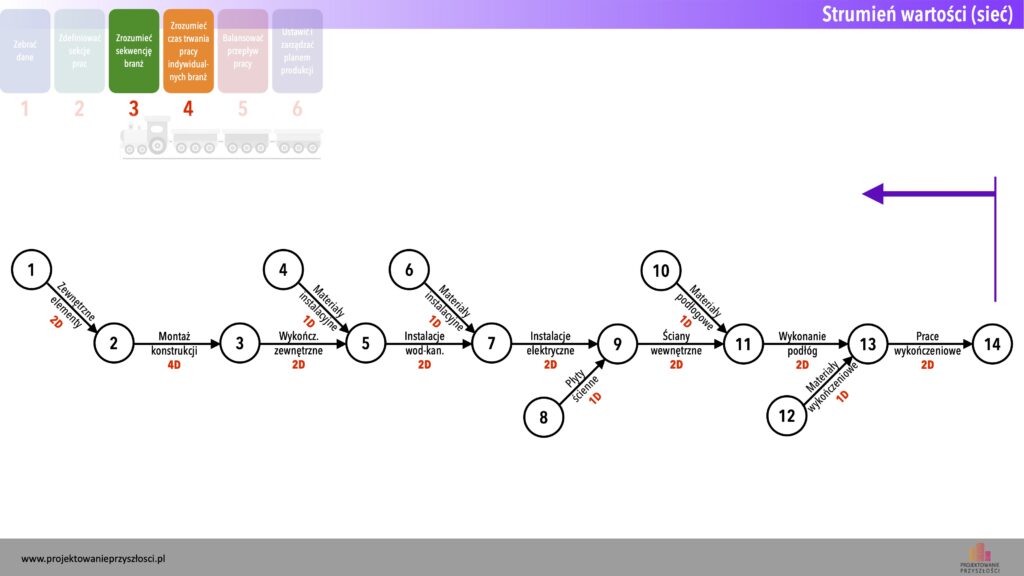 Jak wiemy z poprzedniej części artykułu, istotą efektywnego strumienia wartości jest jego płynny przepływ przez wszystkie stacje procesu – w tym wypadku przez kolejne domki. A więc sieć zadań powinna mieć takie samo tempo w każdym domku.